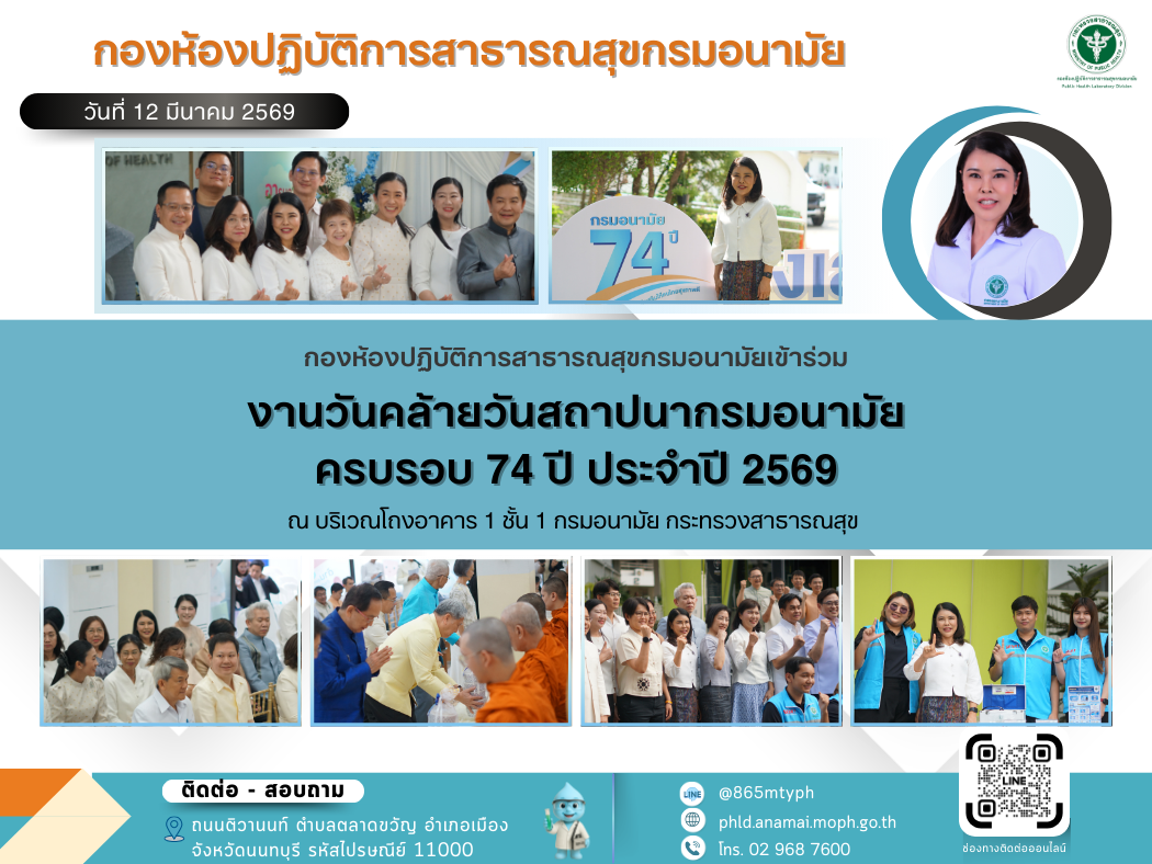 องห้องปฏิบัติการสาธารณสุขกรมอนามัย เข้าร่วมงานเนื่องในโอกาส วันคล้ายวันสถาปนากรมอนามัย ครบรอบ 74 ปี ประจำปี 2569