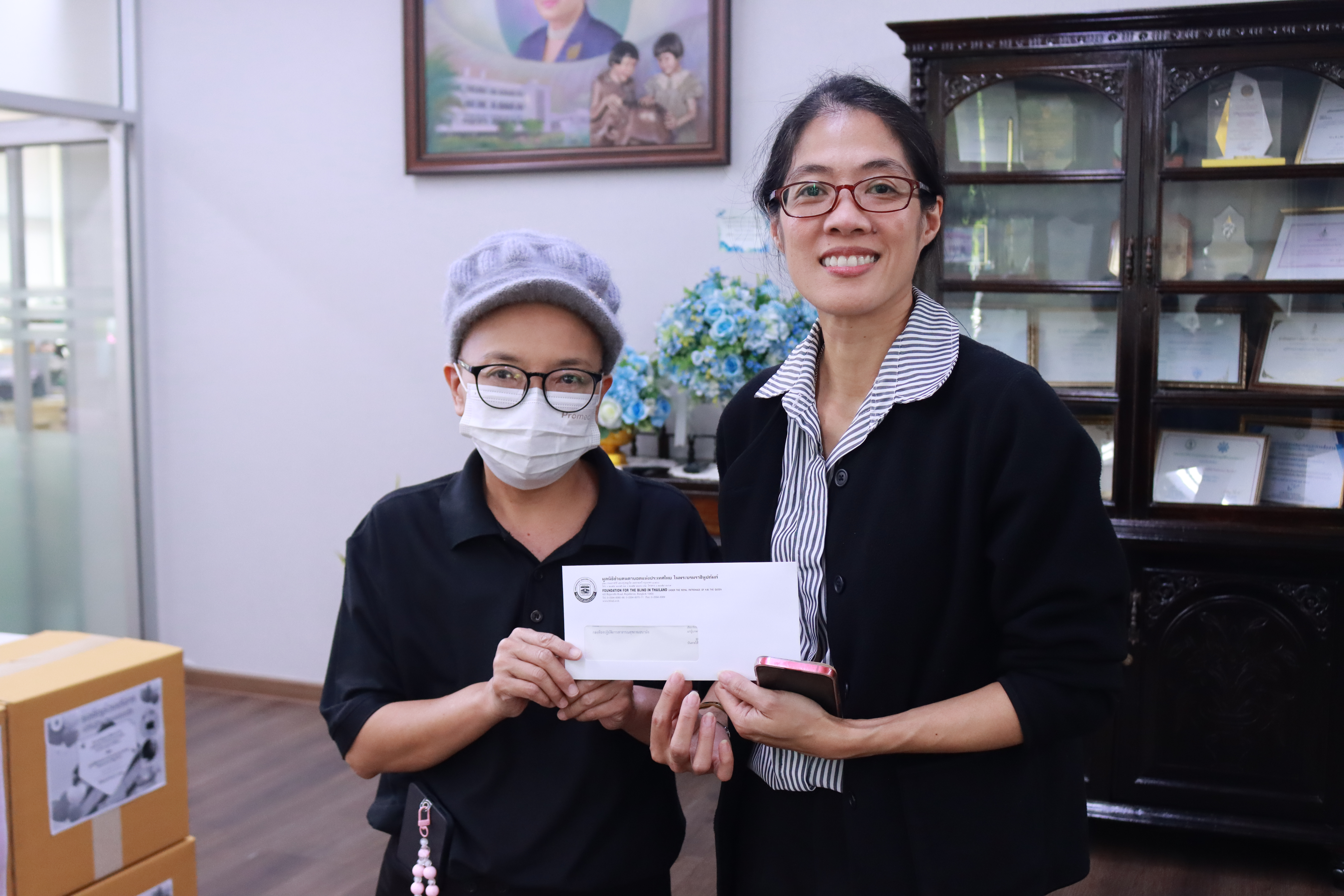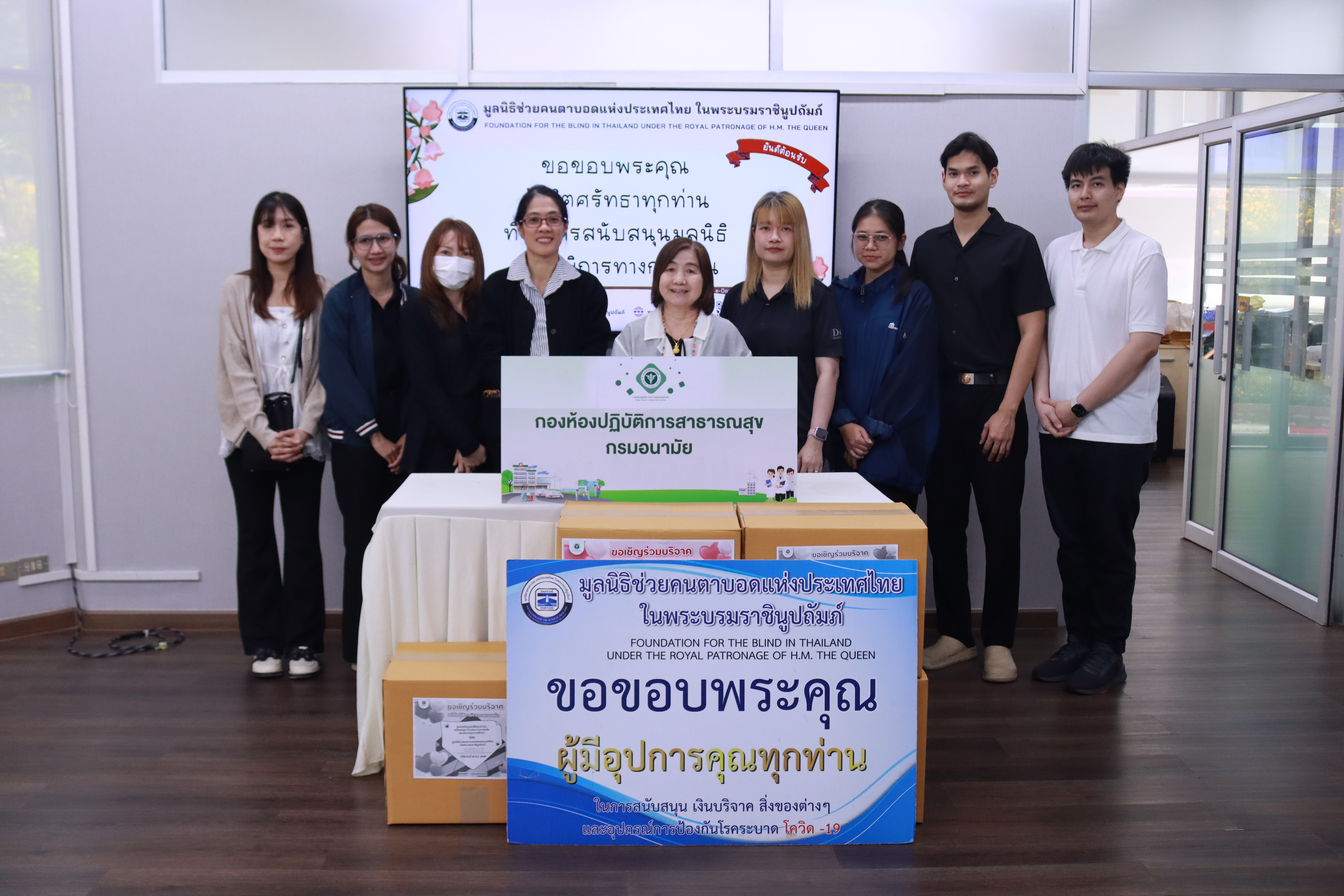 องห้องปฏิบัติการสาธารณสุขกรมอนามัยมอบสิ่งของเครื่องใช้และทุนการศึกษาให้แก่ มูลนิธิช่วยคนตาบอดแห่งประเทศไทยในพระบรมราชินูปถัมภ์เพื่อสนับสนุนเยาวชนผู้พิการทางการมองเห็น